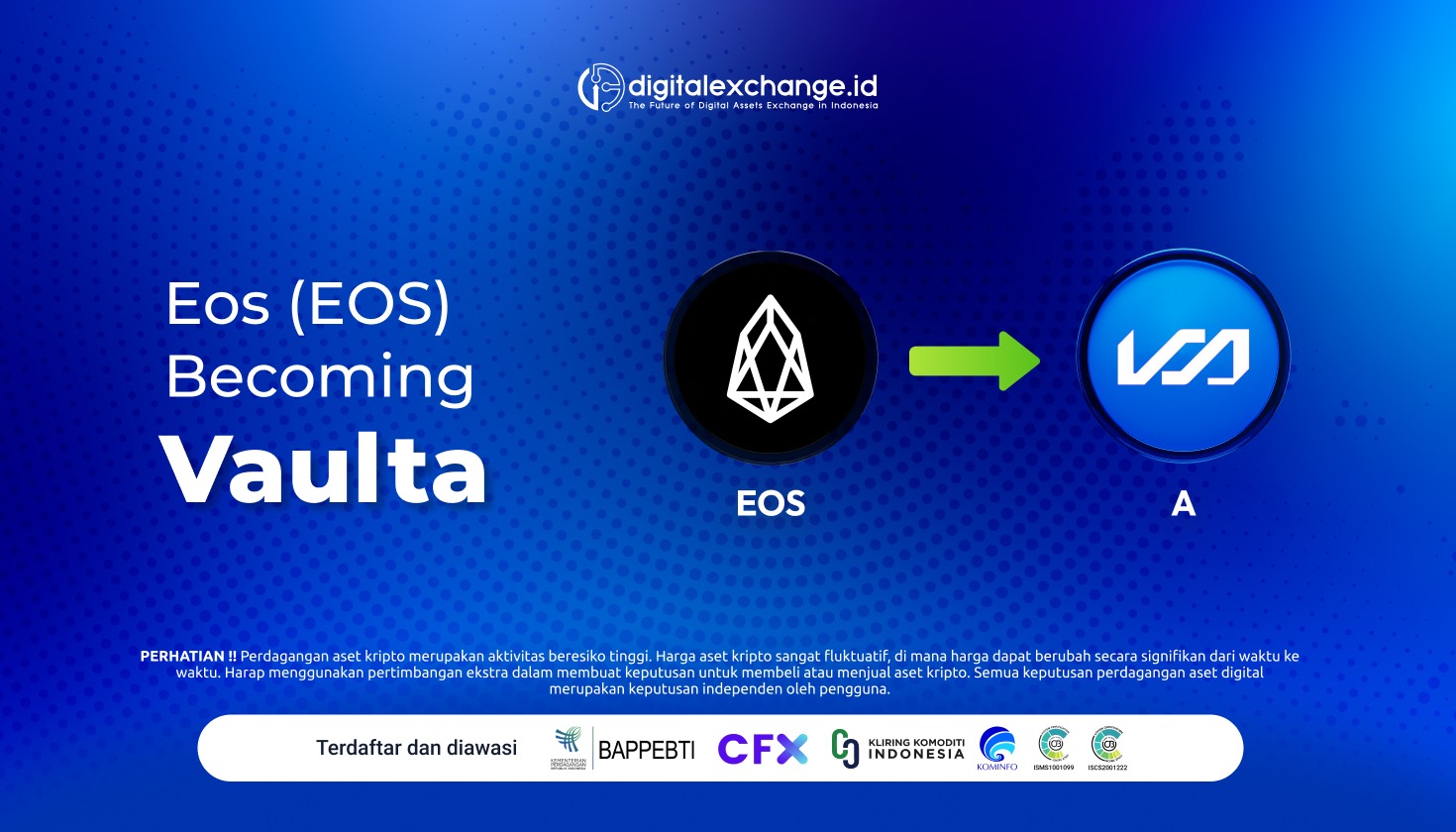 We would like to inform you that digitalexchange.id will support the rebranding and swap of the EOS (EOS) crypto asset to Vaulta (A). In line with this update from the developer, please take note of the following important points: