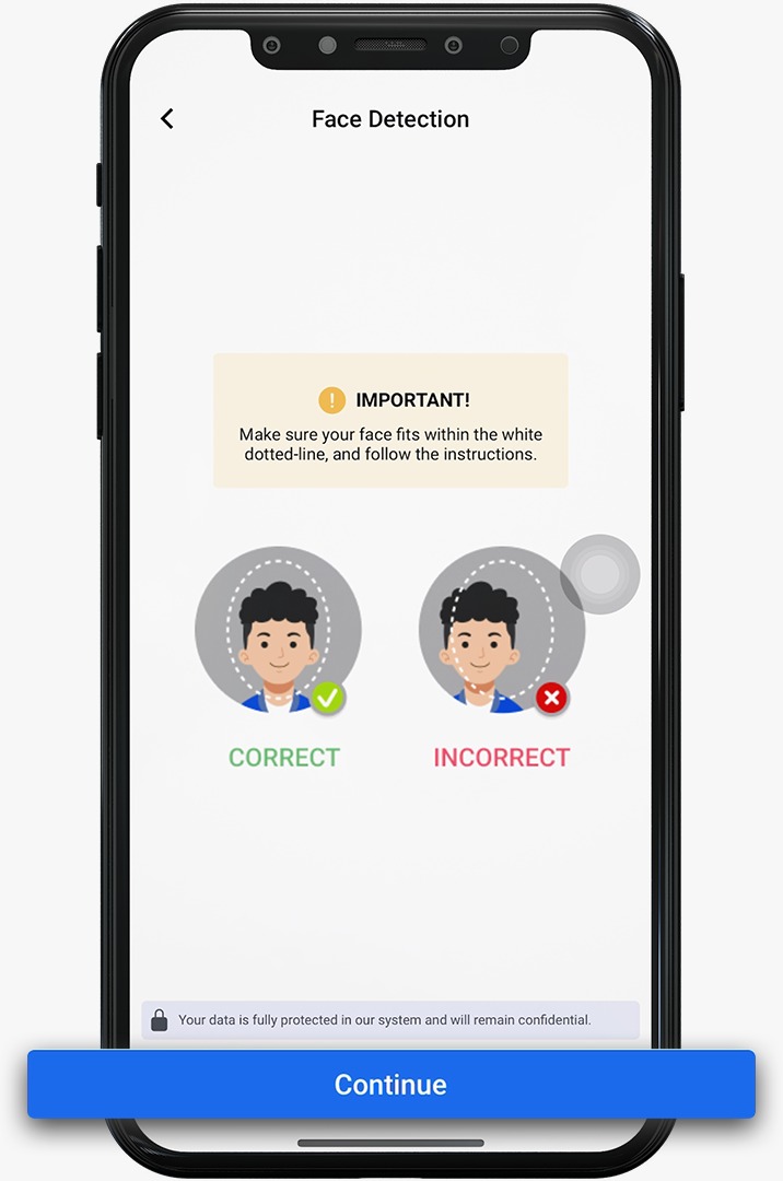 13. Place your face in the circle provided, make sure your face is in the middle of the circle and hold it for a few moments.