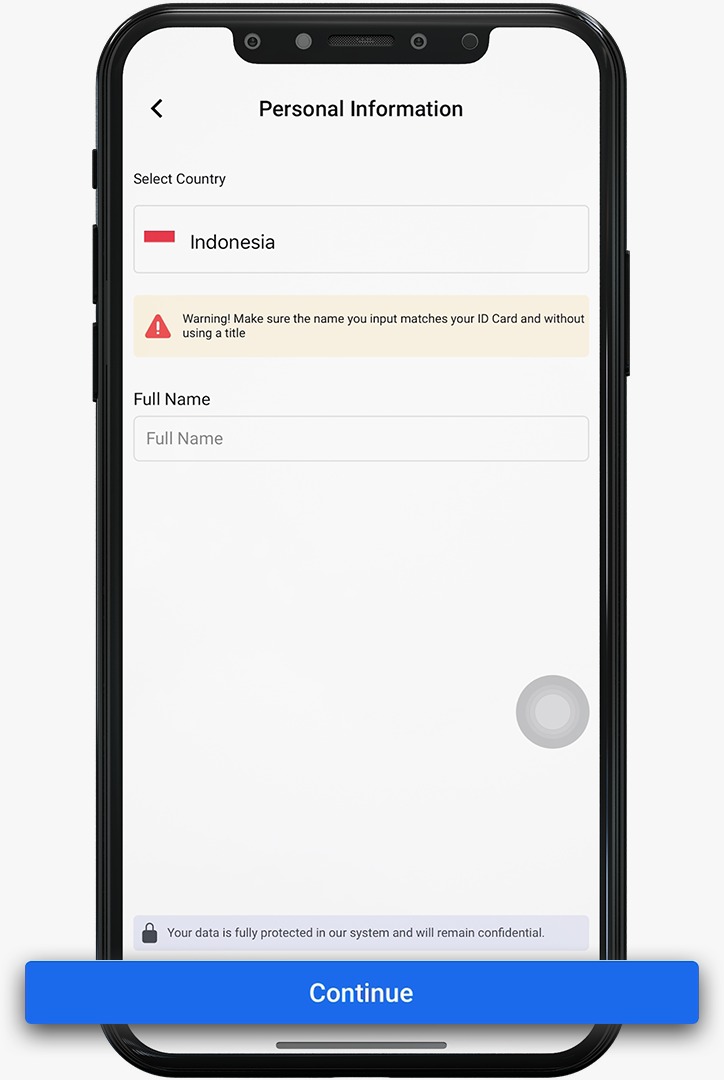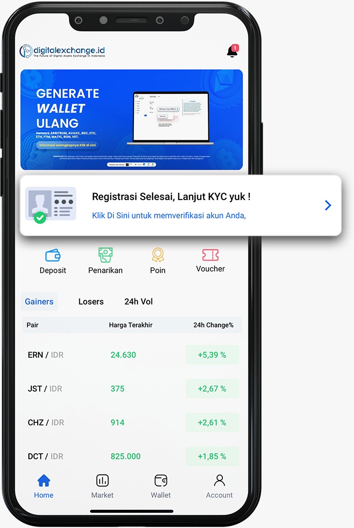 1. Install the digitalexchange.id application available on Playstore & Appstore , then register your account, then click Registration Complete, Let's continue with KYC!
