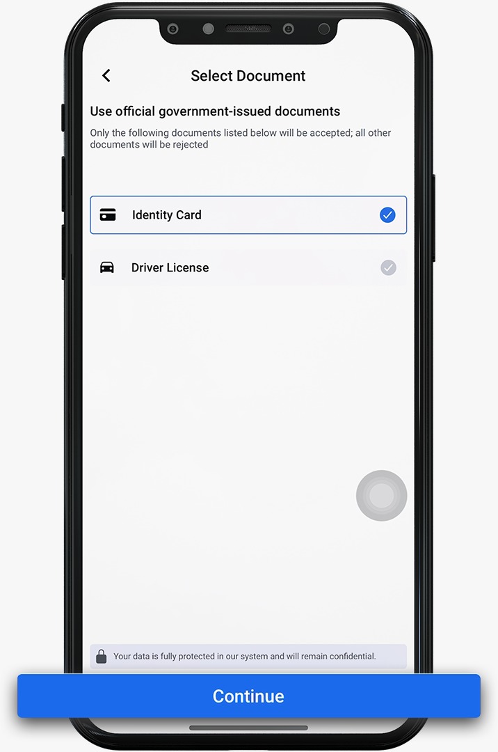 4. Select your identity card, you can use KTP or SIM. Next, click Continue
