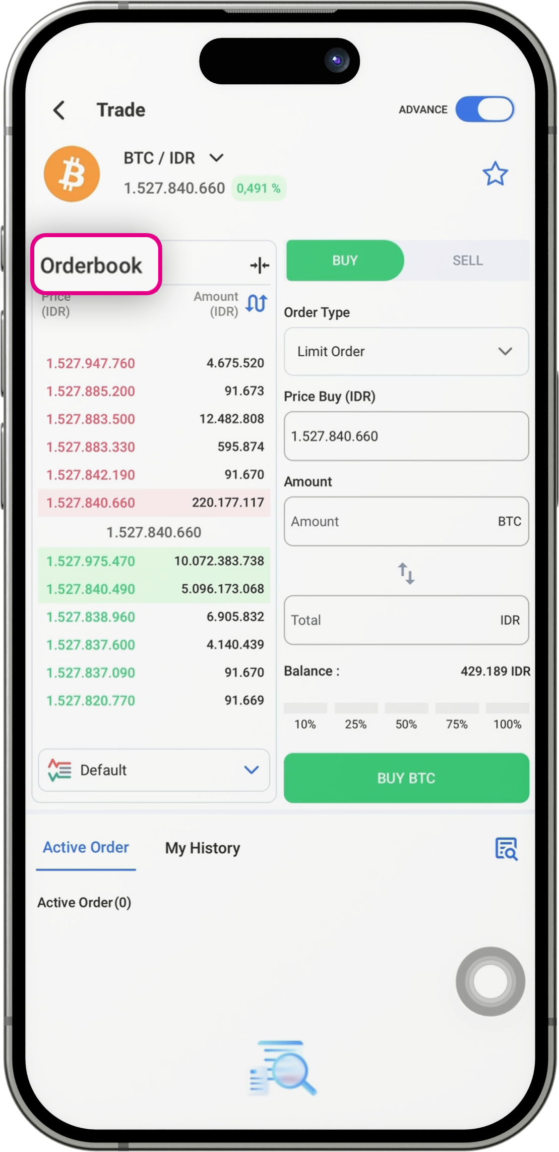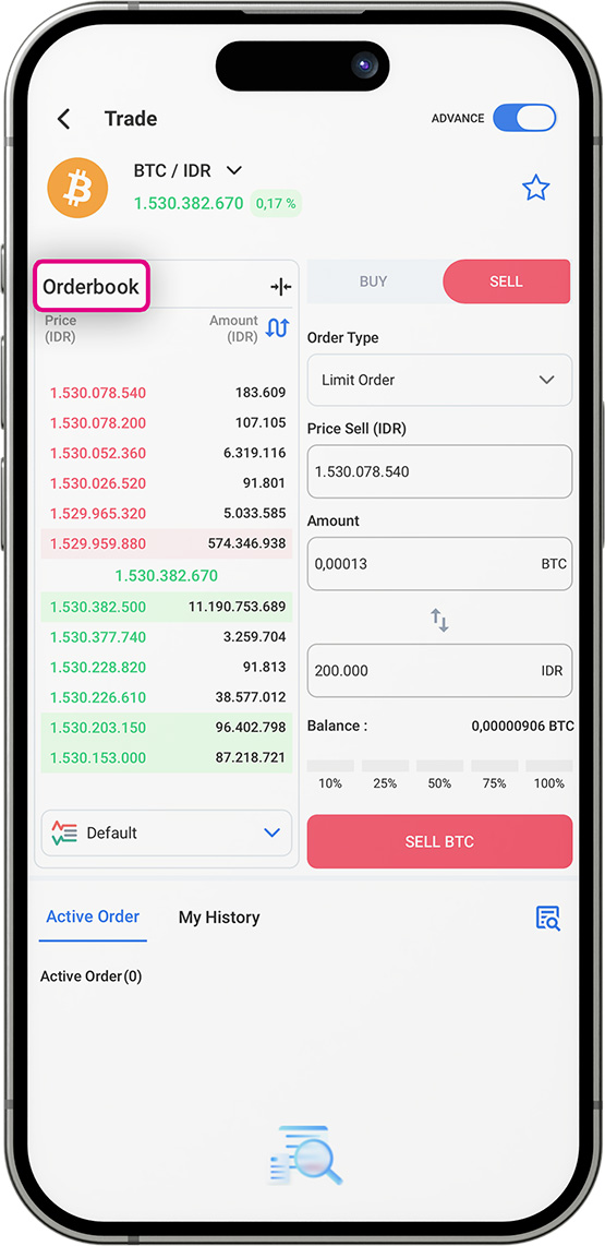 Tunggu hingga tampilan order book kamu muncul di layar.