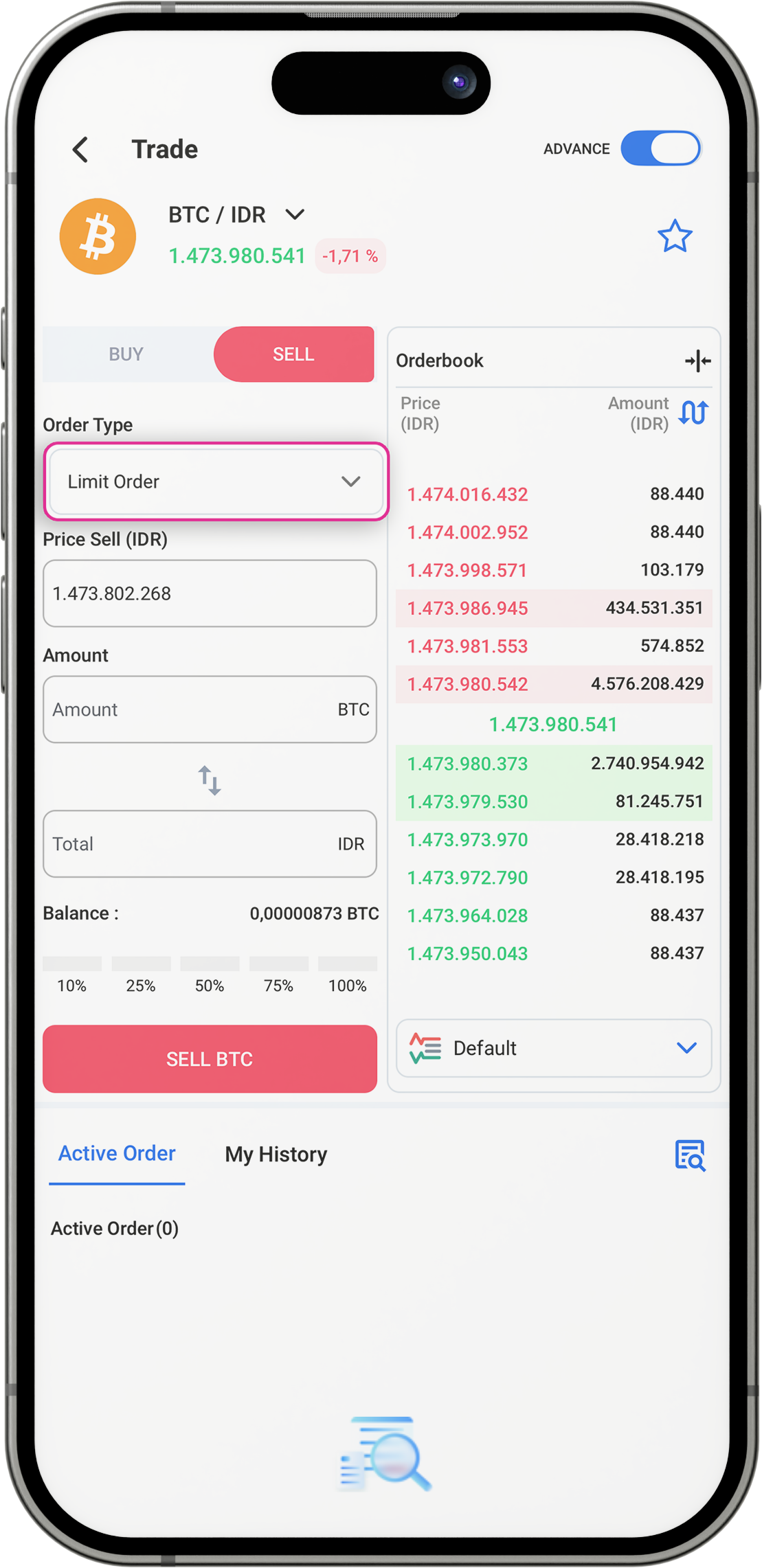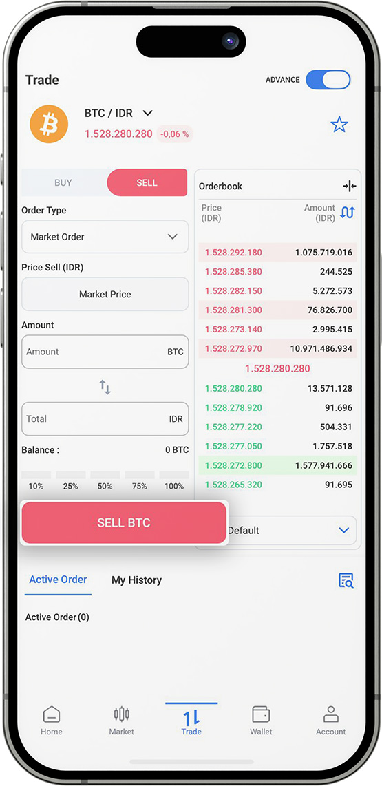 Klik Sell/Jual Aset ( BTC)